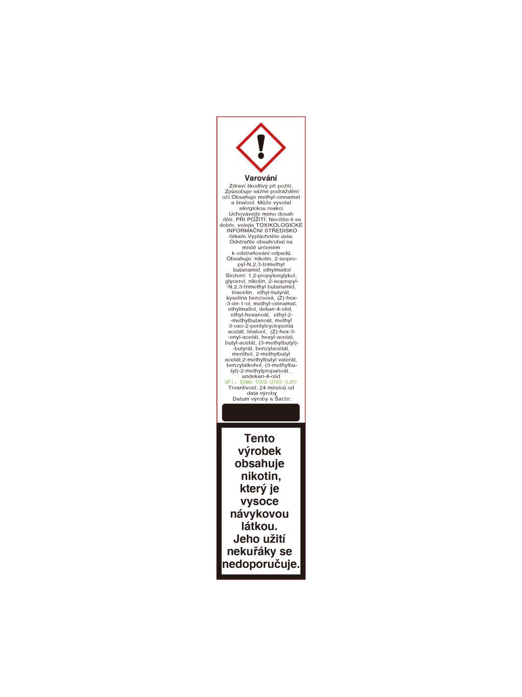 Obsahuje: nikotin, 2-isopropyl-N, 2,3-trimethylbutanamid, ethylmaltol, maltol